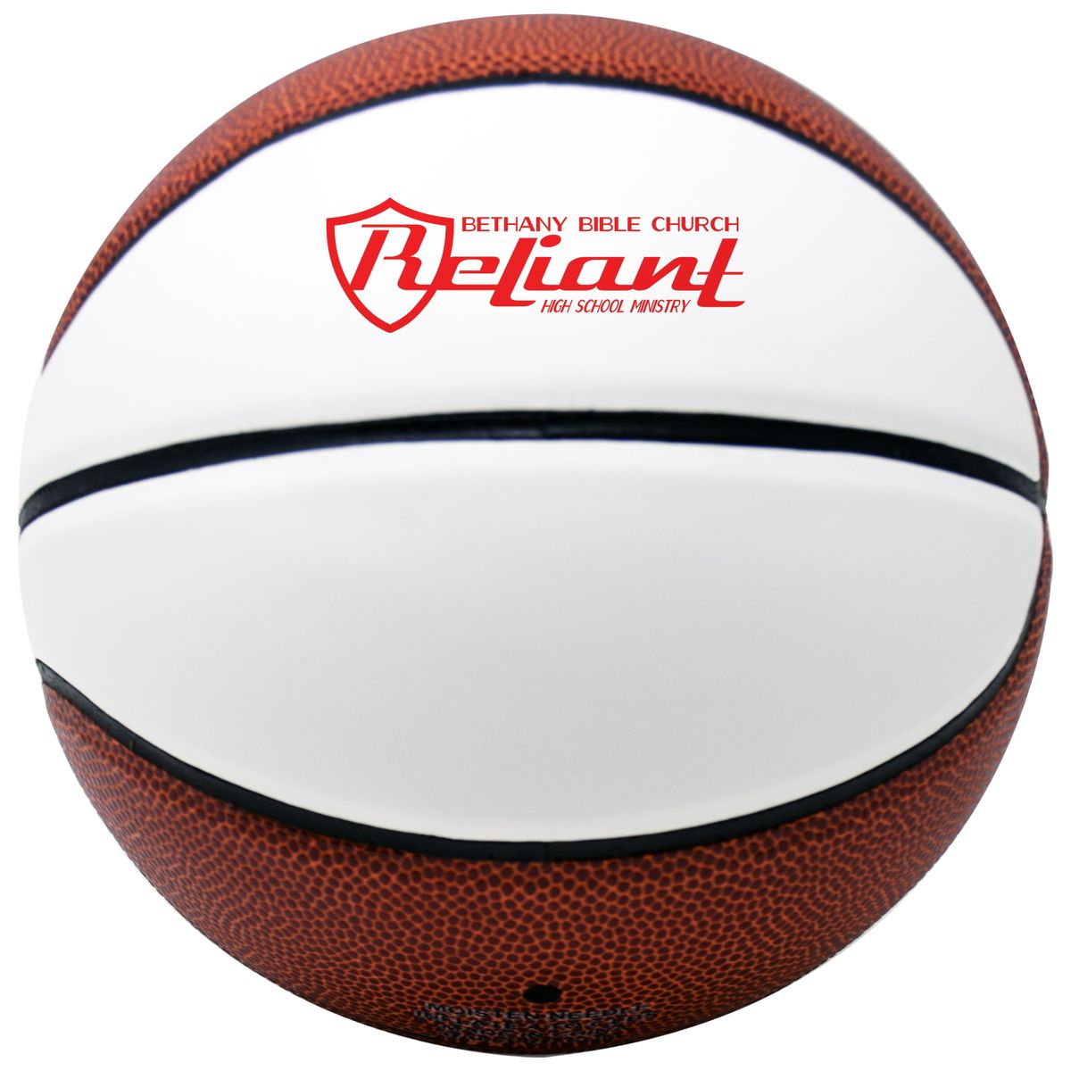 Basketball with two autograph panels.