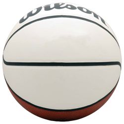 Full size Wilson basketball with 4 white autograph panels.