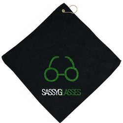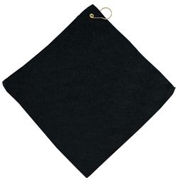 16" x 16" microfiber golf towel. Soft and absorbent, this towel it is tough on dirt, mud, sand, and grass, includes a hook and grommet!.