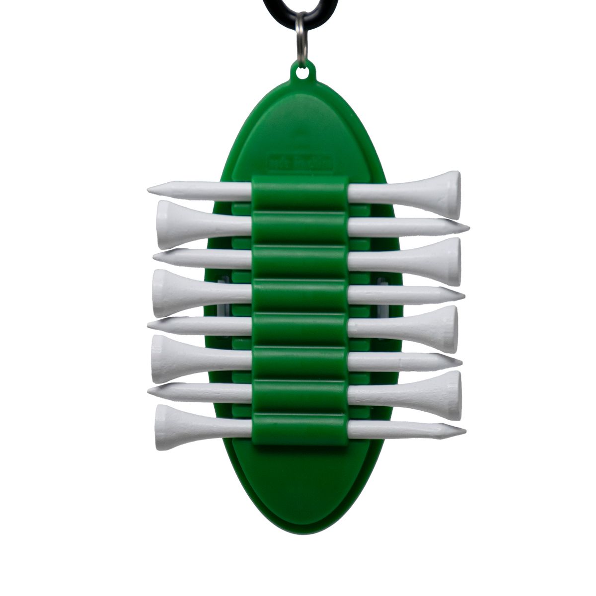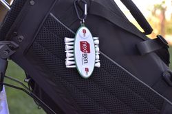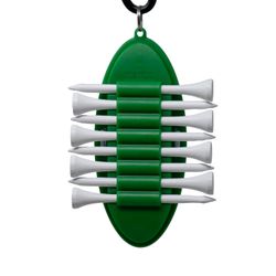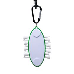 The Oval Golf Tee Carrier is a compact and convenient holder designed to keep golf tees organized and easily accessible. It holds eight white wood tees and two removable 1" plastic ball markers. It has a solid carabiner clip to keeping it secure your golf bag. Ideal for promotional use, offering ample space for custom logo printing, making it a perfect giveaway for golf events or corporate branding.