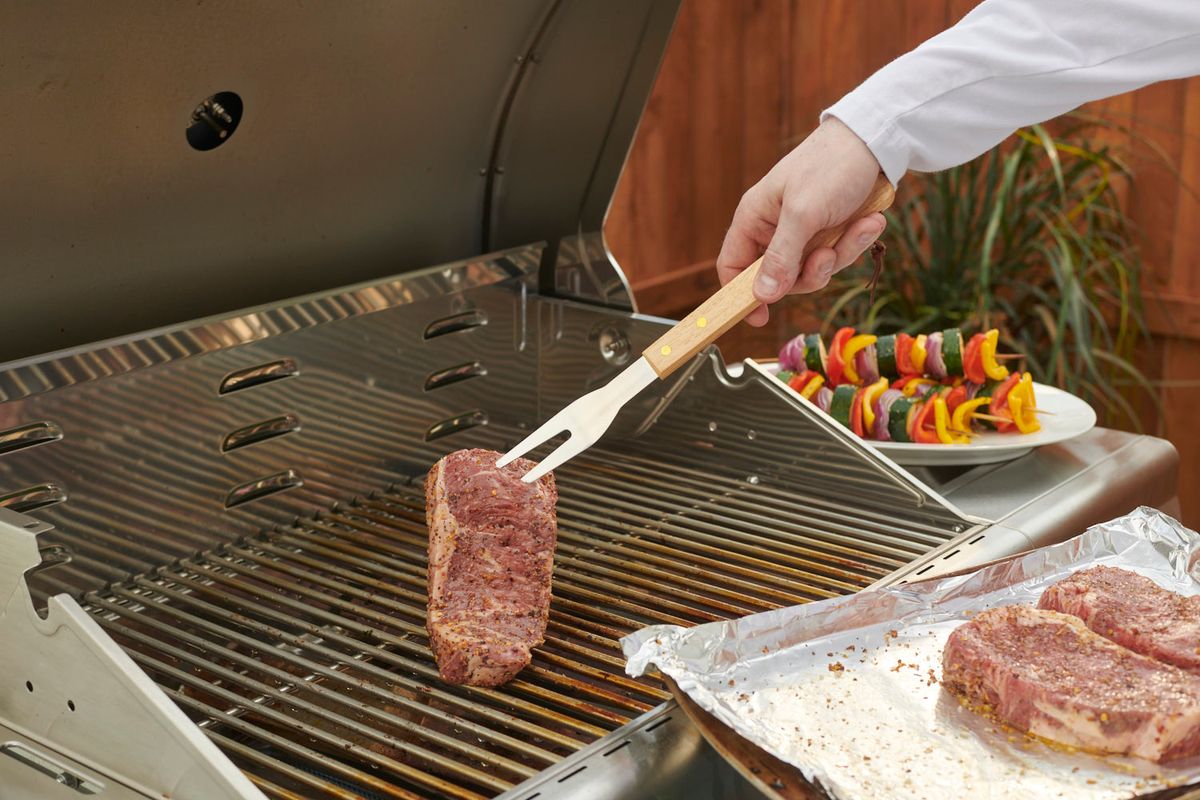- Wooden Handle Grill set has all the tools a griller needs.